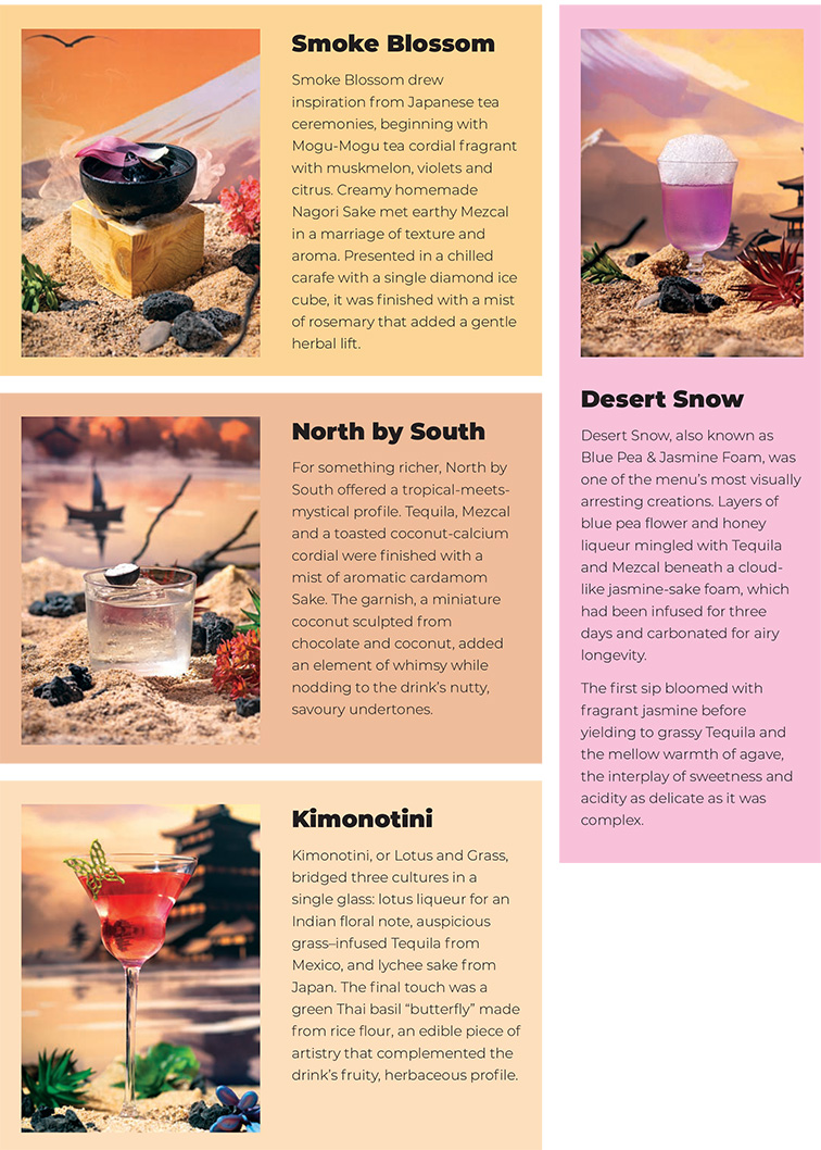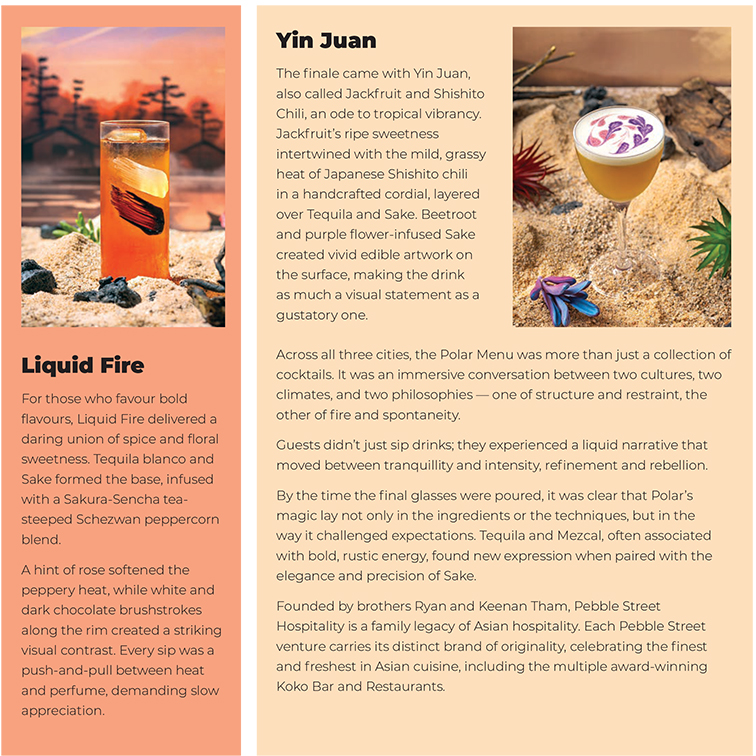 Far from being just another seasonal menu, Polar was a finely choreographed experience, a journey that began in the snow-dusted stillness of Mount Fuji and ended in the blazing deserts of Mexico, capturing the delicate elegance of Sake alongside the bold spirit of Tequila and Mezcal.