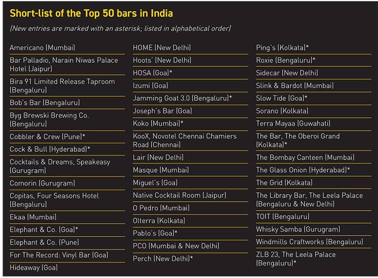 The process of shortlisting the 30 Best Bars continued with the whittling down of the list to 50 Best Bars. These bars polled the most votes from a national 265-member jury of experts and bar connoisseurs. The 30 Best Bars ranking for 2023 will be announced at an awards ceremony in Goa on January 15, 2024.