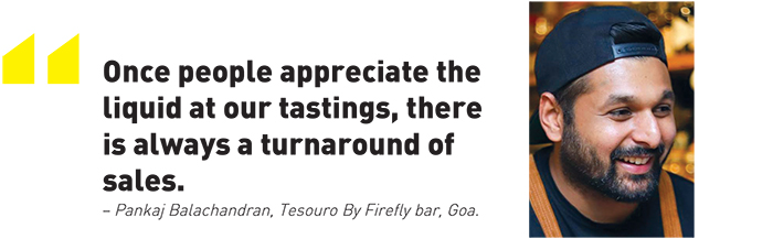 As a bar operator, his team often conducts tasting sessions of high-value alcoholic beverages (along with food), even if the bar doesn’t sell them. “Once people appreciate the taste of the liquid, it is etched in their memory and they will keep it for a special day or evening. There is always a turnaround of sales once this happens,” Pankaj says.