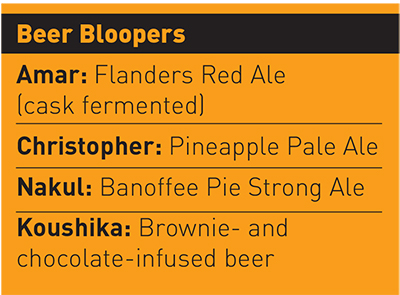 He finds experimentation fun and challenging, and helping take the monotony out of what he does. “The excitement is always high, given the fact that you don’t really know how the beer will turn out after three weeks (see box: Beer Bloopers!)