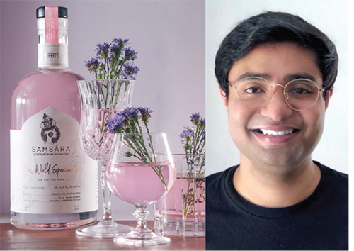 Goa’s Samsara gin (L) was India’s first indigenous pink gin. Its Founder, Aditya Agarwal (R), assigns a key role to gin in ushering a cocktail culture to the market.