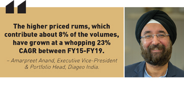 Amarpreet (Diageo) adds: “What brings cheer is the higher priced rum that contributes to about 8% of the volumes has grown at a whopping 23% CAGR between FY15-FY19.”