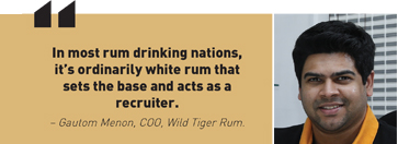 The same needs to develop in rum too. Keshav (The Vault) says that in most rum drinking nations, it’s ordinarily white rum that sets the base. Gautom Menon, COO of Wild Tiger Rum, agrees that white rum acts as a recruiter.