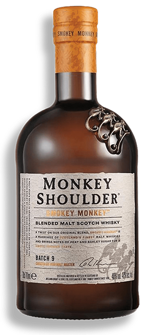 Smokey Monkey, a perfect balance of sweet and peat for cocktails and mixing. With a delicious twist to the original Monkey Shoulder, Smokey Monkey is a blend of oaky smokiness and a taste that balances dry peaty notes with creamy sweetness and spice. The liquid comes into its own in Smokey twists on classic cocktail serves. Bottled in 700 ml at 40% ABV.